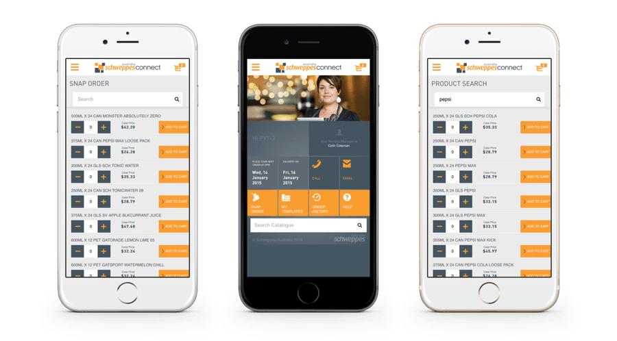 This app enabled Schweppes Australia to streamline customers engagement by mobilizing most important business operations such as placing orders, with the ability to choose from multiple ordering options, including Snap Order (most recent orders), create customized order templates and set email reminders, browse order history along with order and delivery dates, manage account and payments, browse catalog, and explore tools to help you grow sales.