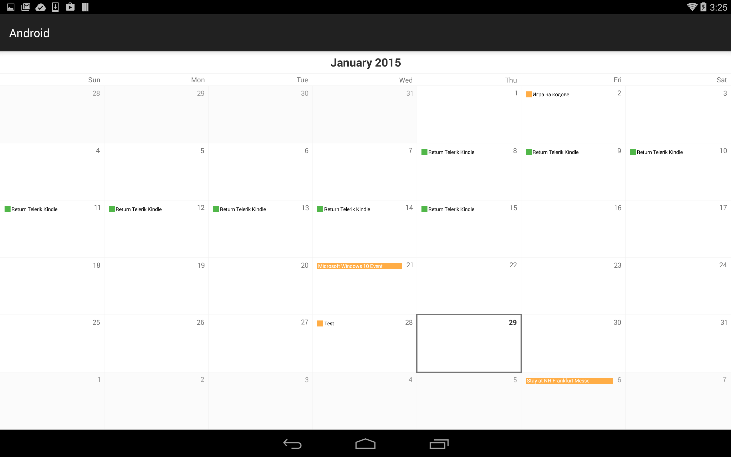 Reading events and appointments from the device with ease was high on the wishlist of developers using Telerik UI for Android. The code snippets below highlight some of the upcoming functionality.