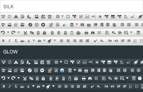 Silk and Glow are built according the CSS3 standards and the soft and slick feel is achieved by CSS3 gradients that will work perfectly in the latest versions of the browsers. Don’t worry, for all of you that still have to support older IE browsers (before IE10) the skins have a fallback system for the gradient and will also keep their layout. The rounded corners of the UI elements are, again, achieved by using CSS3, so do not be disappointed that they won’t be visible in IE 6, 7 and 8.
