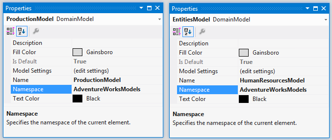 For example if you have two Domain Models in your solution – one for the HumanResources schema of AdventureWorks and one for the Production schema.