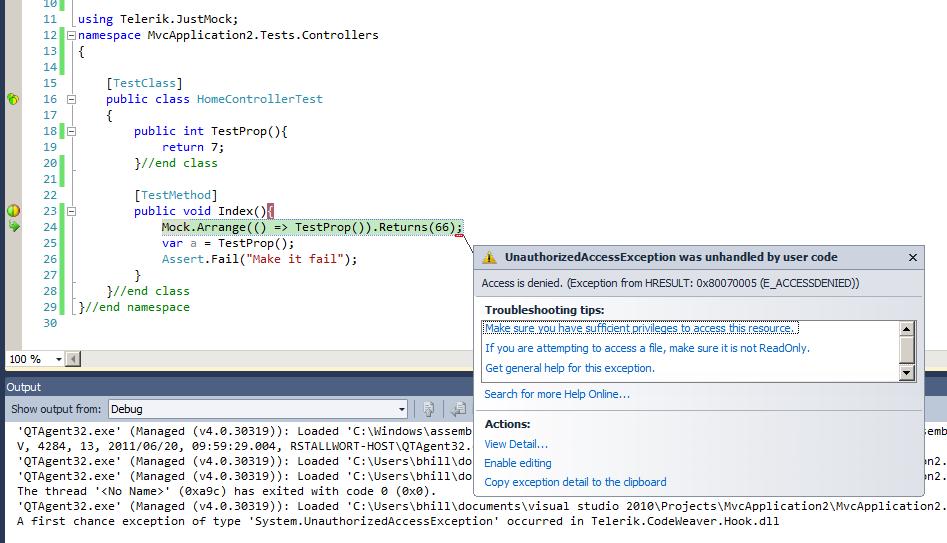 A first chance exception of type 'System.UnauthorizedAccessException' occurred in Telerik.CodeWeaver.Hook.dll