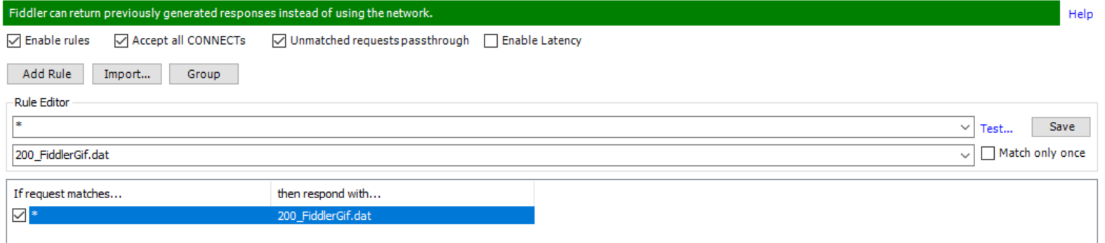 Alternatively, Fiddler Script might be used to respond in the same way to every request.
