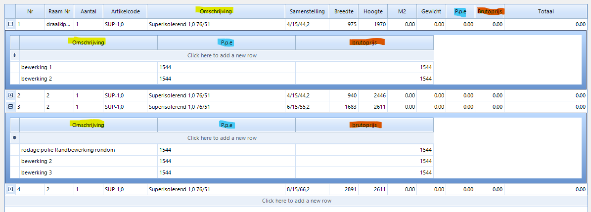 I have a grid with header and child rows. Some columns are the same in the child rows but not everything.