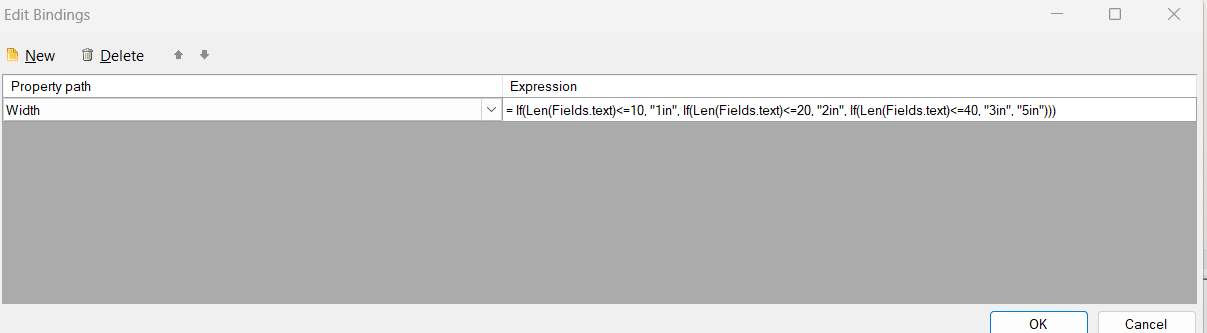 You could use bindings to set the width dynamically based on the length of the text. E.g.