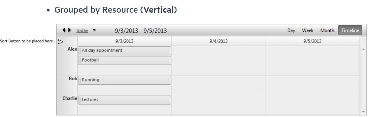 In our application, we have a requirement to implement functionality that allows users to sort the resource column in ascending or descending order via a button placed atop the resource header. Requirement is as shown in below image.