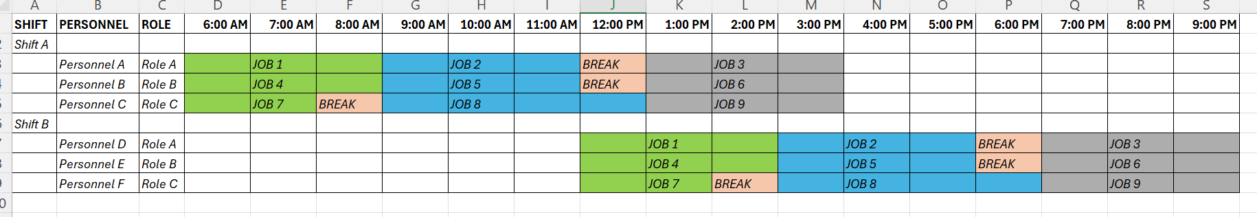 Is the below format possible in Scheduler. (Multi resource Grouping by Shift and then by Personnel and then by Role. )