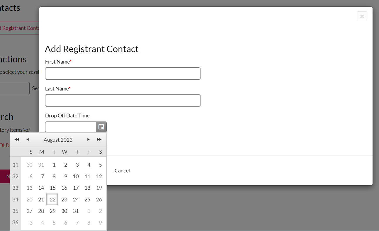 modal with a datepicker attached to it. The focus is on the invisible