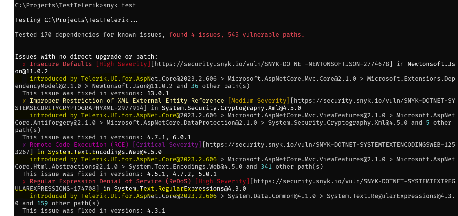 While scanning our projects for security vulnerabilites, we noticed that Telerik.UI.for.AspNet.Core 2023.2.606 references an of .NET Core 2.1 which is 5 years old and long since unsupported? This means that using Telerik.UI.for.AspNet.Core immediately introduces the critical security vulnerabilies present in .NET Core 2.1. Why does it depend on this ancient version of .NET?