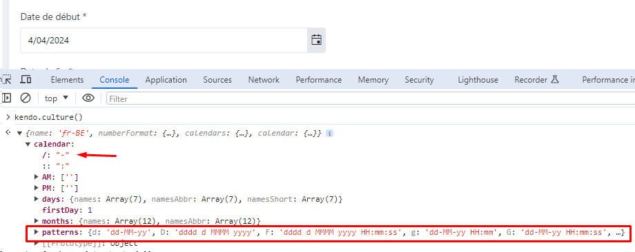 We are using the current culture fr-BE which uses dd-MM-yyyy format but when using the DatePicker and inspecting the HTML, we see the following.