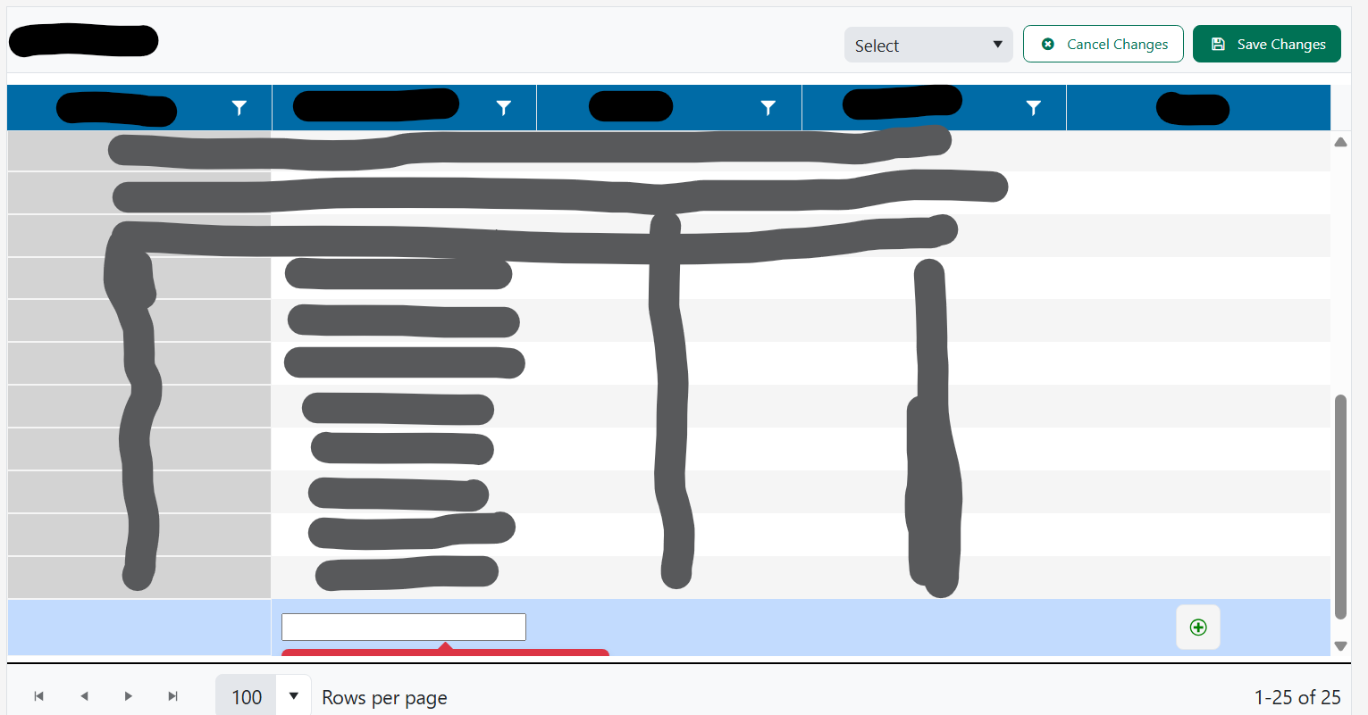 The above functionality is working fine, but when we do a filter on any of the column then on filter click button it should display filtered row along with new empty row.