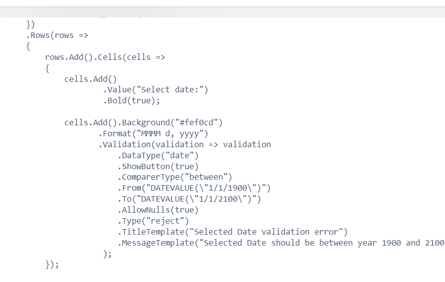 I have set the formats accordingly on the .cshtml page, but it seems as though the exporter ignores this and it needs me to set the 'NumberFormat' to 'dd/mm/yyyy' in the SpreadCellFormat in order to show the date correctly. However that then applies the same format to every cell in the spreadsheet, meaning that the numerical columns turn to dates.