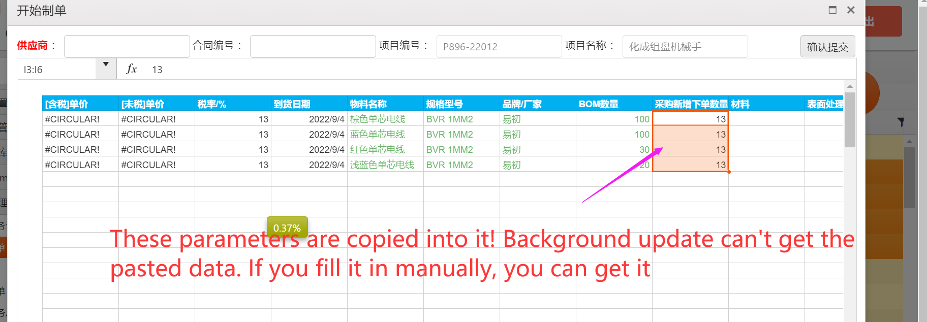 When spreadsheet click Submit, the value of my cell is copied and pasted in. I can't get the value of data.updated in the background! How to solve this problem
