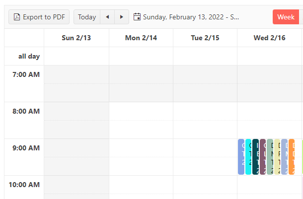 I find myself in a position where I have multiple events happening at a single time/day in the Scheduler tool, and they're basically unreadable in the Week view (which is the preferred view for my target audience). Each entry is just a sliver of color unless they go into Day view which is not a workable solution.