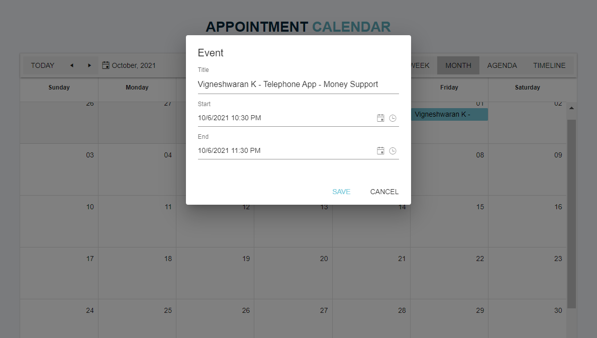 I am facing issue wrong appointment time is shown on the calendar. The appointment is Stored in Database as Datetime.