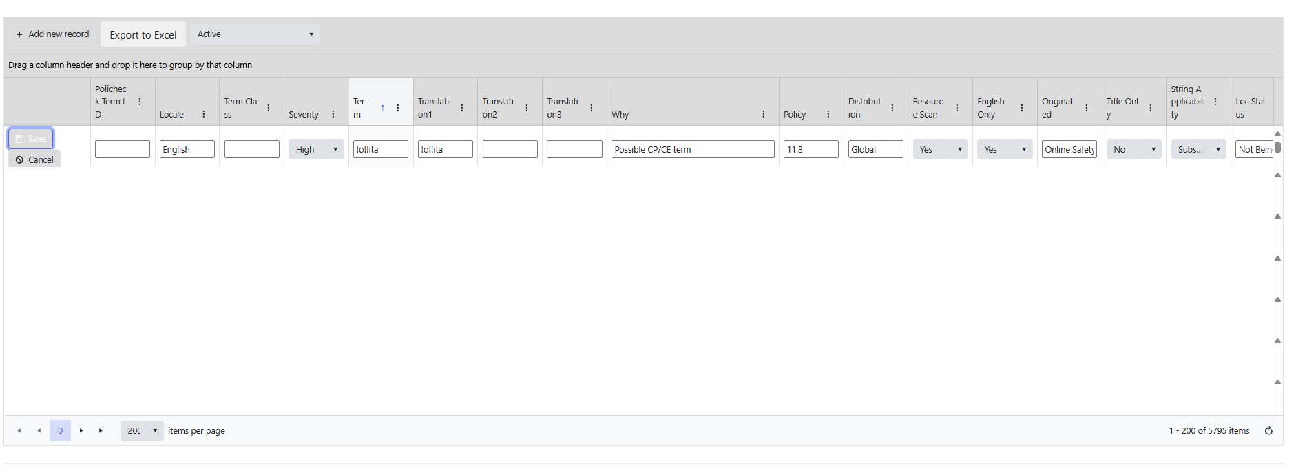 Here is the grid before I click the first Edit button: