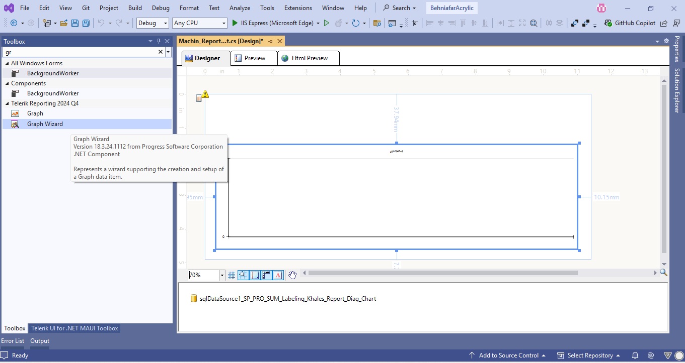 I am using ASP.NET Framework, and in the Telerik.Reporting.Graph section I have a chart that is populated by a stored procedure.