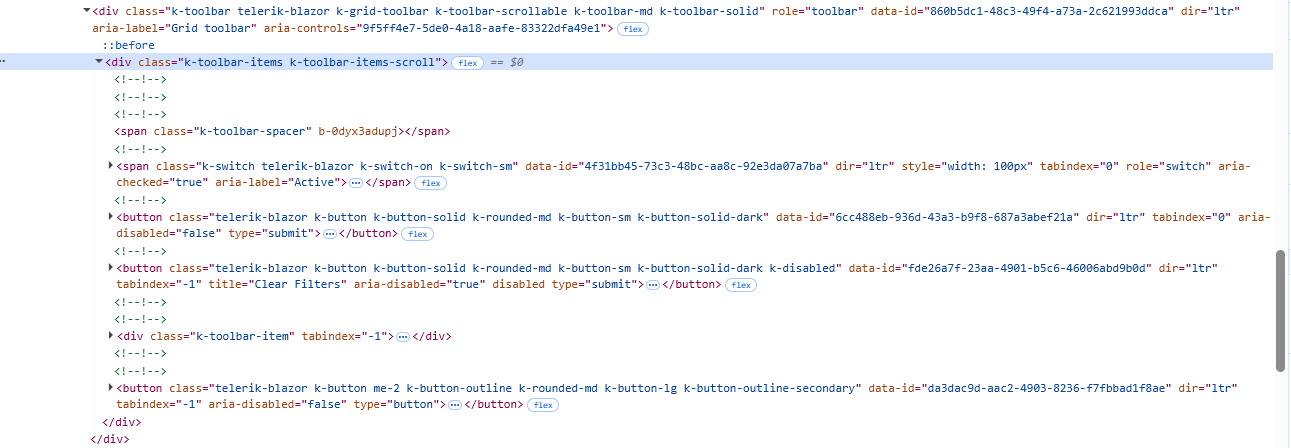 Since upgrading to version 9 the GridToolBarTemplate is getting a k-toolbar-scrollable and the toolbar is getting wrapped in a div with k-toolbar-items k-toolbar-items-scroll classes. This is preventing my toolbar from rendering the way it did in version 8.