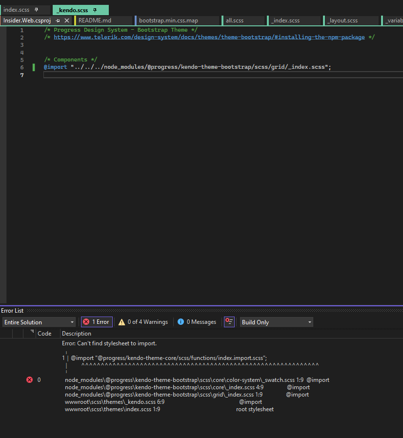 We're trying to make use of Telerik's NPM package with our Blazor project, along with that we want to only implement the individual components we want to use for our stylesheet instead of using `dist/all.