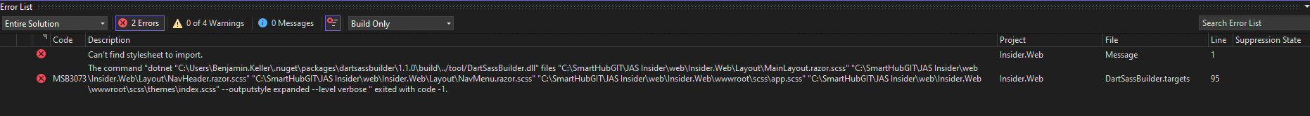 It seems both DartSassBuilder and WebCompiler can't make use of the @ naming, and we're unsure of what to do to solve this.