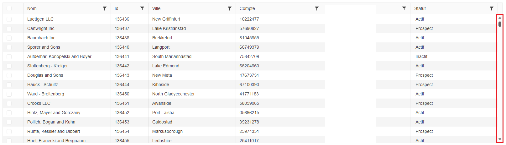 For that i have choosed a DataGrid and i have implemented a behavior like a "scroll infini" which authorize the user to moove his scrollbar anywhere in the grid.