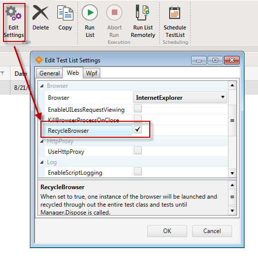 We should rename this property, I went into the options a bunch of times... "Recycle" to me kinda meant "Restart" instead of what it should be I think... "ResuseBrowser" or more obvious something like CloseBrowserAfterEachTest or something