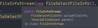 Create the FileSelectFileInfo instance with a null Stream first, and then set its Stream property by passing the previously created FileSelectFileInfo object. This is how we do it in our source code: