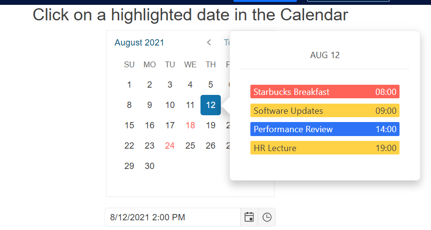On the calendar I click the 12th which had multiple meetings: