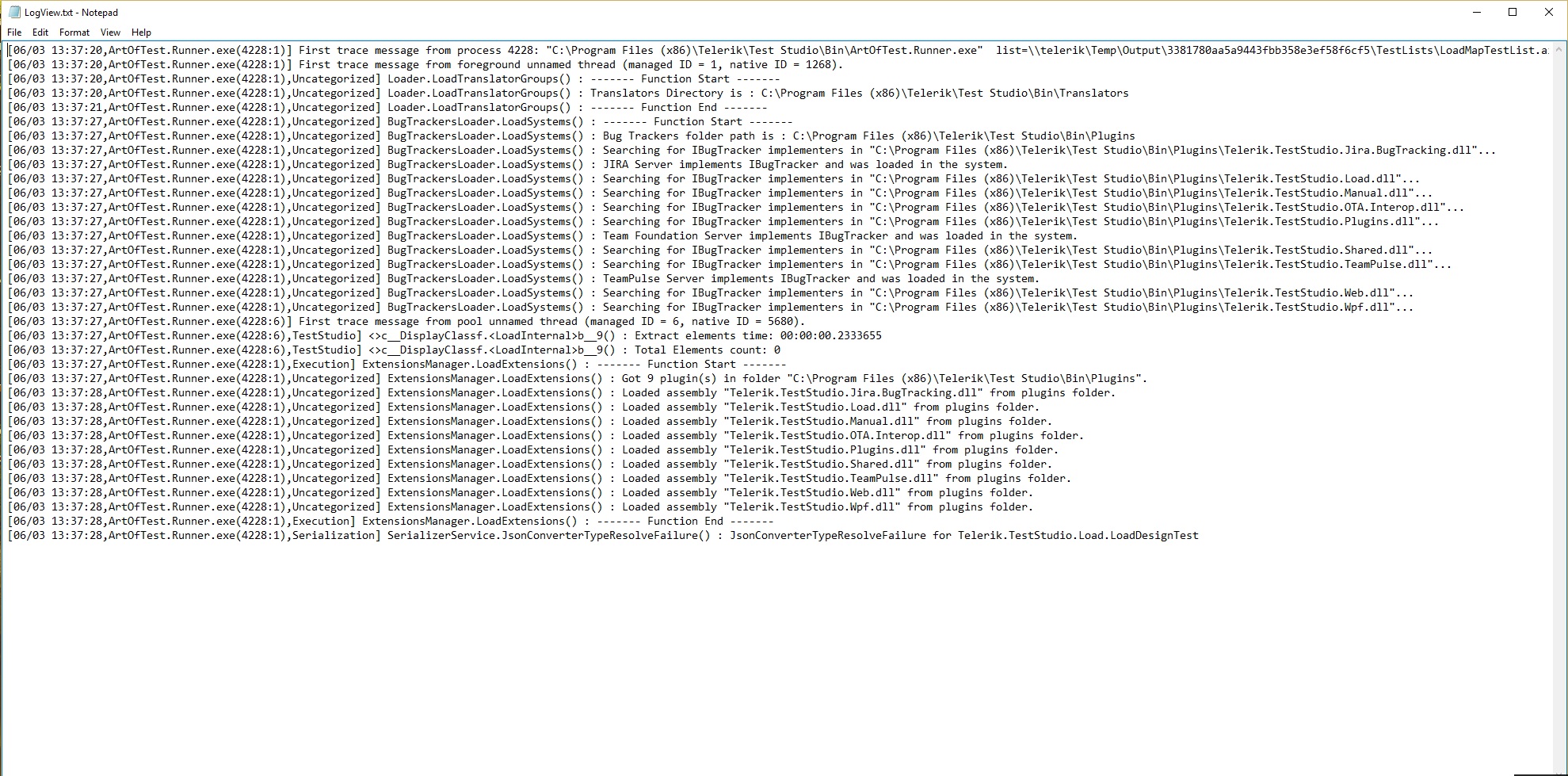 And throws this error SerializerService.JsonConverterTypeResolveFailure() : JsonConverterTypeResolveFailure for Telerik.TestStudio.Load.LoadDesignTest.