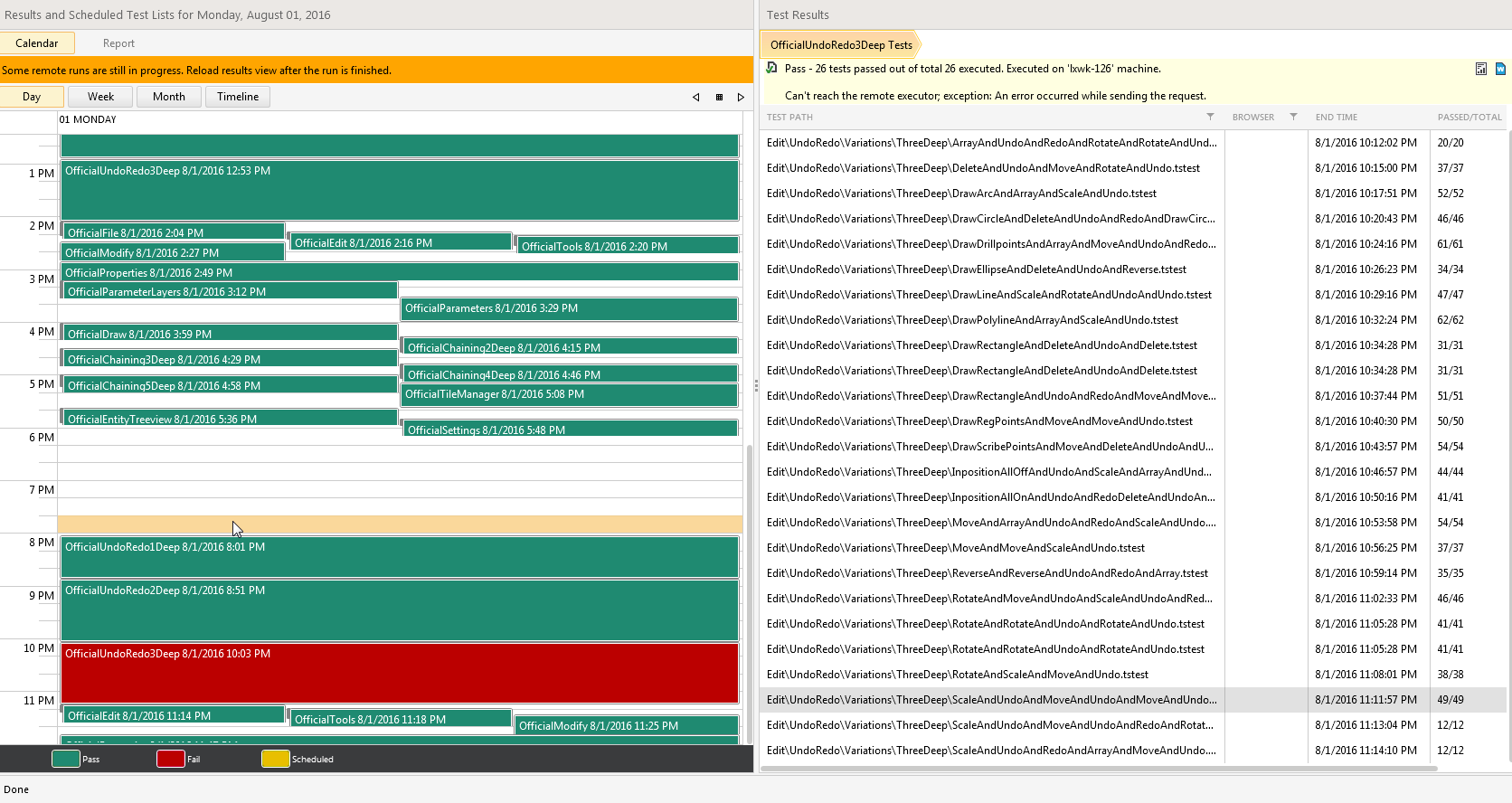 I noticed this morning that one of my test lists failed in my nightly build. The name of the failed test list is OfficialUndoRedo3Deep, it contains 24 tests as indicated by the attached screenshot TestListView.png and it is displayed in red my results viewer (as shown in NotSelected.png). The attached screenshot ResultView.png shows my results view with the failed test list selected.
