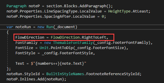I'm working on a program that creates DOCX file from JSON data using Telerik word processing library. This file uses RTL language scripts.The problem is there is no way to set font style for complex script (not Latin) in styles. for example I set the font size to 11 but when I set the Run's FlowDirection to RightToLeft, the library ignores the font size and uses the default size (the size for Latin script). How can I set font size for complex scripts (like Arabic or Persian) ?