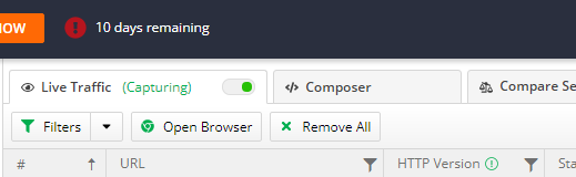 Live Traffic is enabled and shows all requests for that Win10 machine.