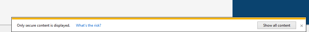 I'm automating a web system in Internet Explorer (the only browser supported). At a given point, I'm supposed to click a button and that should launch a second window. When clicking the button, this security dialog pops up: "Only secure content is displayed." and clicking in "Show all content" should allow the new window to open up.