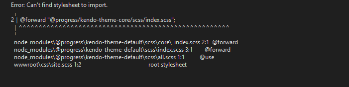 But when I import the package inside my scss file style, I have the following error and i can't compile the scss file:
