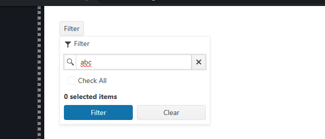 Note that I have created a new component that handles the open state, the filter state and displays the checkbox in a popup.