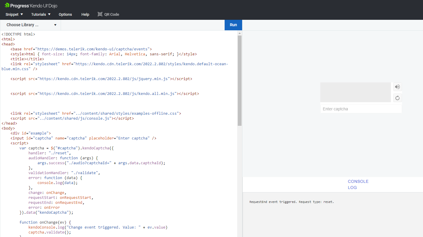 Hi,I tried the captcha, it shows as Demo but"Edit in Kendo UI Dojo" doesn't work the same.Is there a detail we missed?Thanks,
