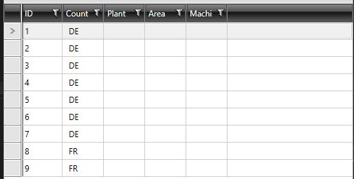 | ID | Country | Plant | Area | Machine |