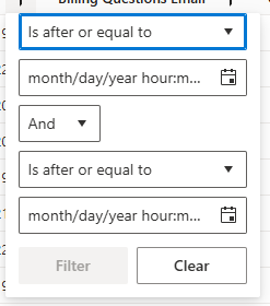 I am using the above date filter in a custom filter component. I want to have the 1st filter be gte, and the second fitler be lte. However, I cannot seem to get it to default this way - any default operator I give it applies to both filters