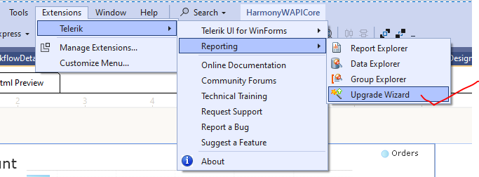 What do I do at this point ? Can my API Core projectI somehow call into my old Reports Framework project? Or is there a Telerik upgrade tool that I can download ?