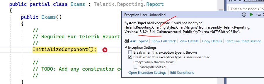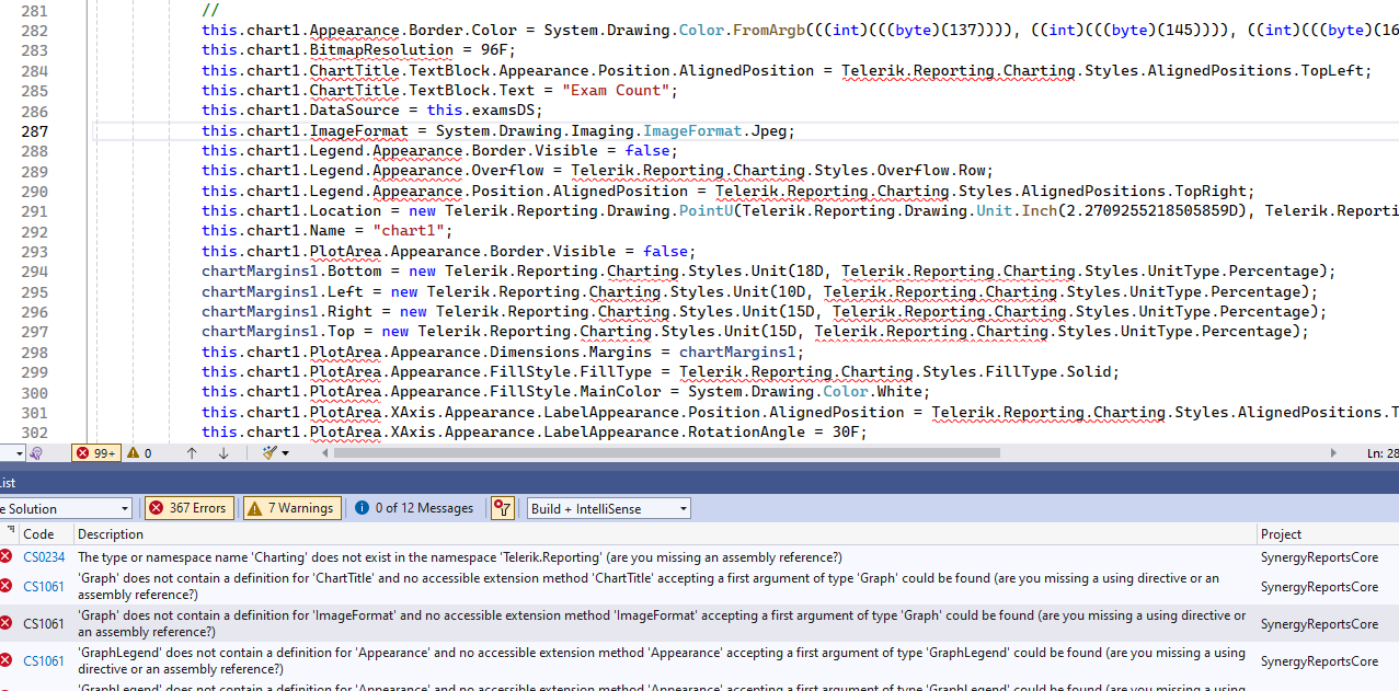 Here's an example of one Exams.Designer.cs file that breaks everywhere on"Charting".
