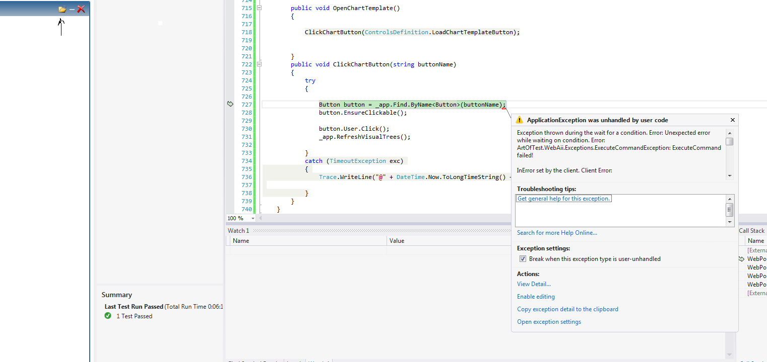 3. Please provide us with a copy of your test and if it is possible grant us access to your application so we can reproduce the issue on our end and give you a solution. If it is not possible to grant us access to your application, please take a Fiddler trace and attach it to a support ticket in a zip file. You can capture a Fiddler trace using FiddlerCap.