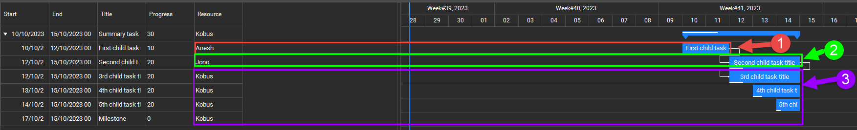 and added a column "Resource", it will help a lot if you can give me an example where every resource can have its OWN fill color to identify them quickly.