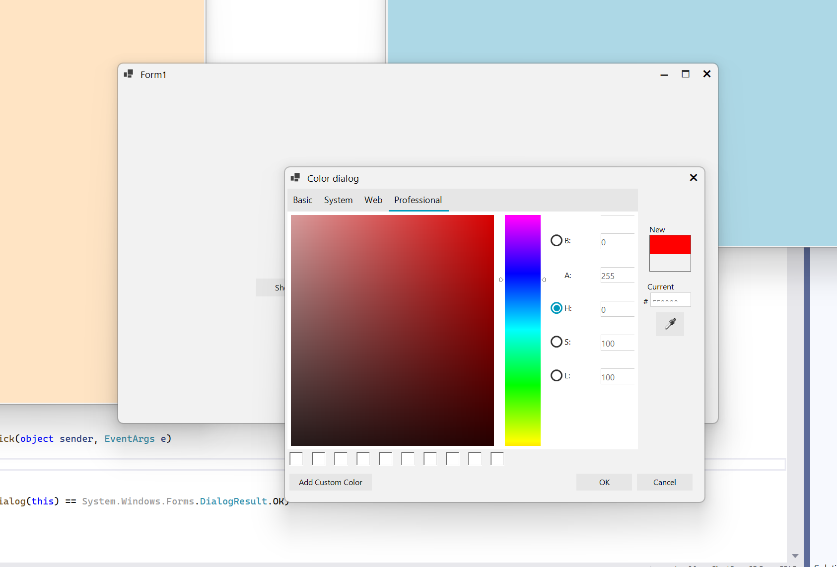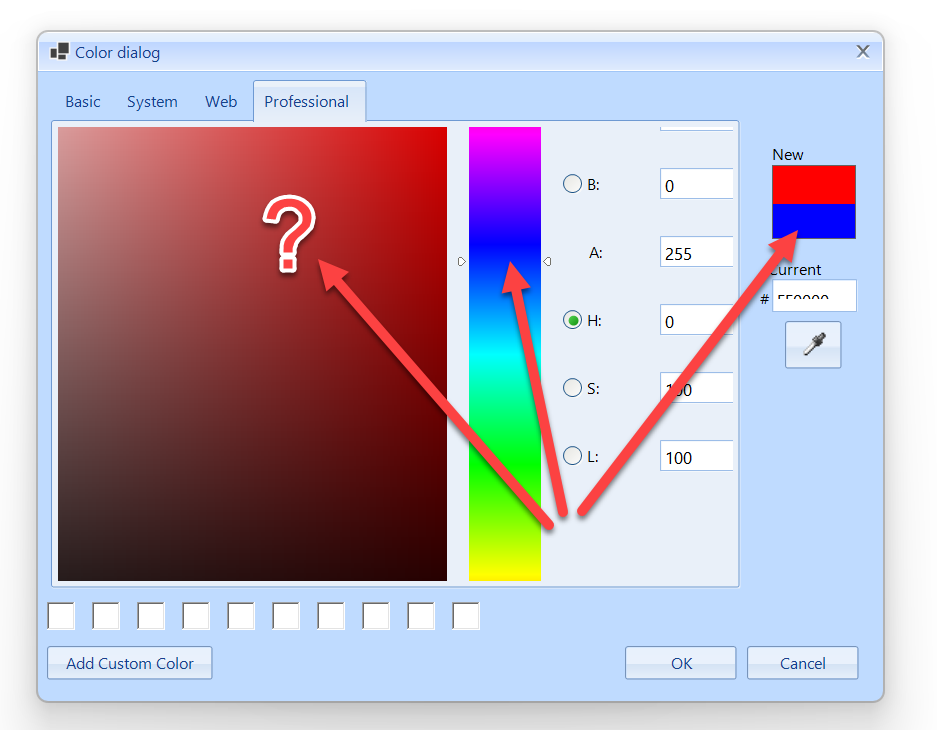 The system ColorDialog works as expected