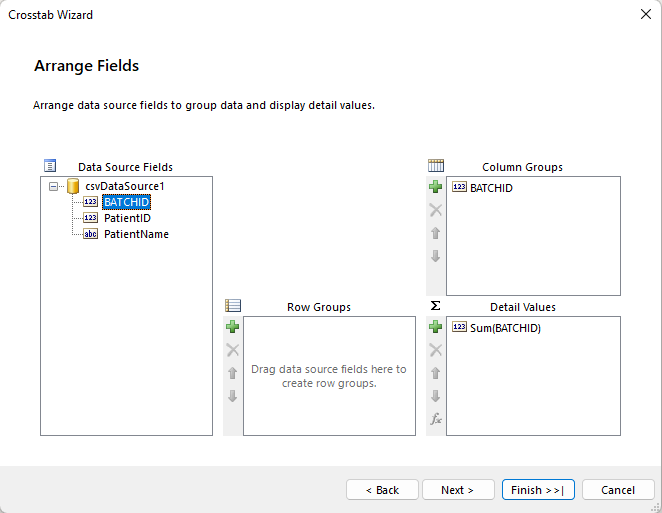 Please refer attached screenshot. I am trying to create CrossTab table with One column as Column Grouping.