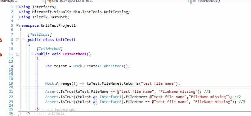 Assert.IsTrue((toTest as Interface2).FileName == @"test file name", "FileName missing"); //3