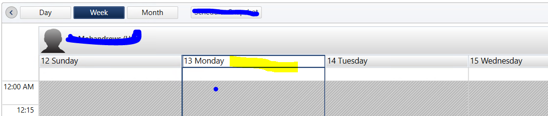 In the below yellow hightlighted place , (group header ) need to add Resource related information for the day in weekview. But couldnot get exact datacontext of the group header while switching between dates, Only able to get IResource from Groupheaderdescriptions. In IResource having only few properties for cusomization.