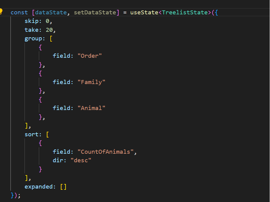 I'm having an issue when I add a "compare" function in the "group" field of the "State"(which take Array<GroupDescriptor> ).
