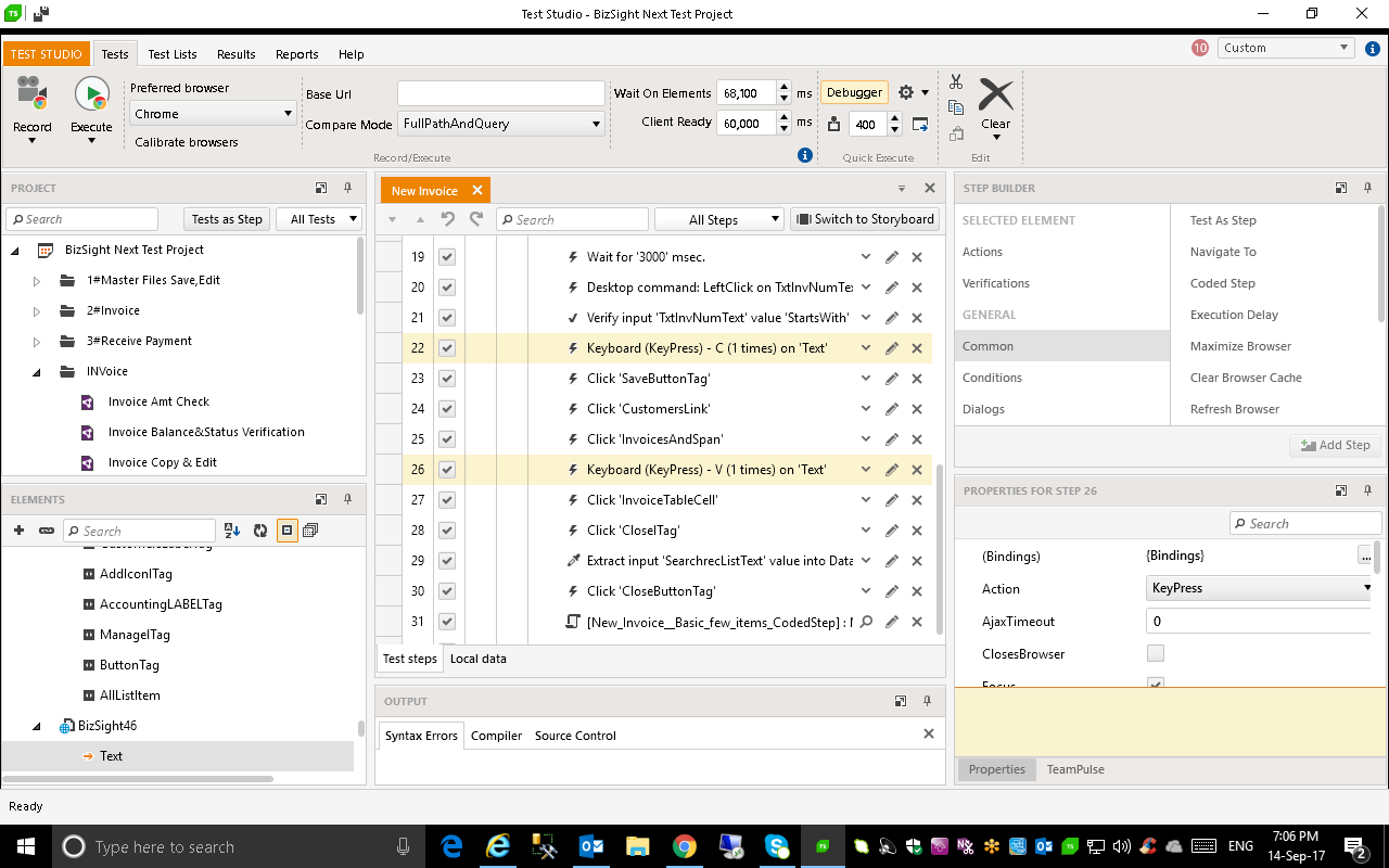 What is the action to copy - is it only to press on "C" key? If it is so you could try to use instead a key press step a coded step with this line of C# code:
