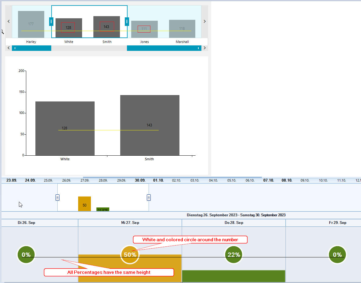 I already implemented a custom CartesianRenderer and custom BarSeriesDrawPart to control the color of the bars depending on the calculated workload. But now I want a Label with the workload percentage centered on each bar. But i don't know how to calculate the the rectange of the area from 0% to 100% to figure out the correct positioning.