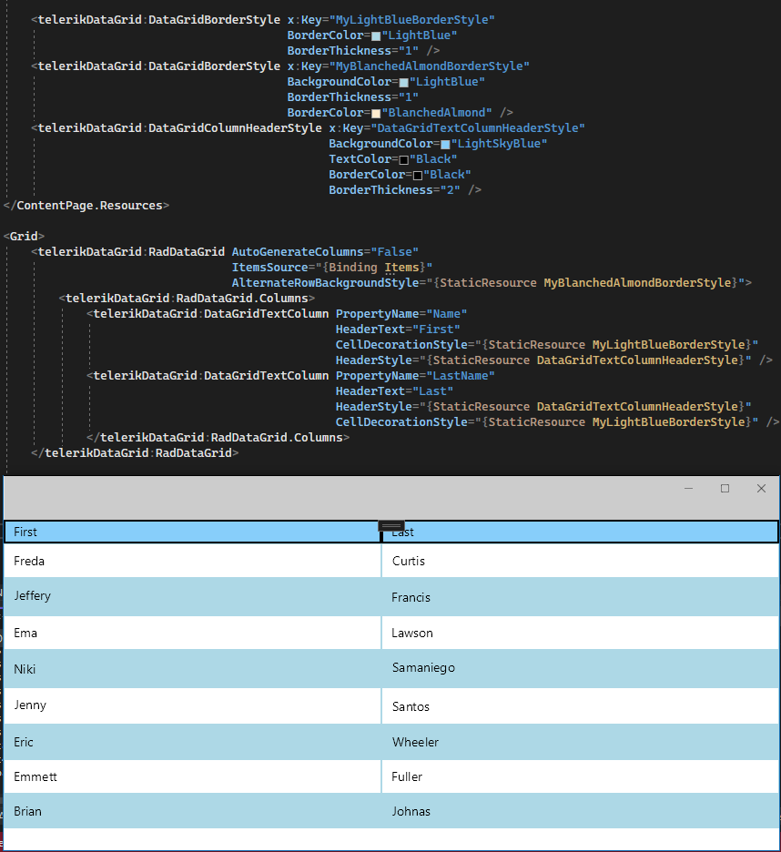 <telerikDataGrid:DataGridBorderStyle BackgroundColor="LightBlue"