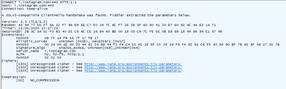 Let me provide an example. I can see that as of today, the domain i.instagram.com from the screenshot provided in the Original Post hasn't enabled the TLS 1.3 or SSLv3 protocols which means these sessions will appears as Tunnels in Fiddler. This is for security reasons.